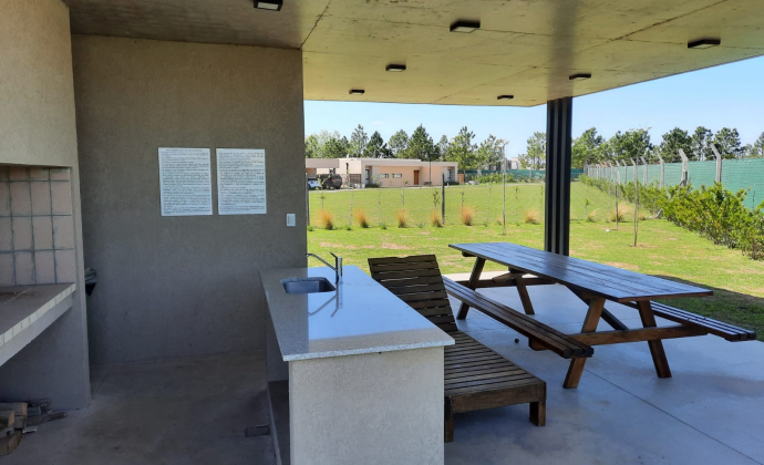 Dicho barrio posee cerramiento perimetral, doble ingreso uno con portería, iluminación con cableado subterráneo, dos quinchos más piscina con solárium.