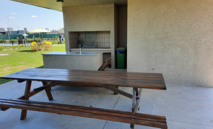Dicho barrio posee cerramiento perimetral, doble ingreso uno con portería, iluminación con cableado subterráneo, dos quinchos más piscina con solárium.